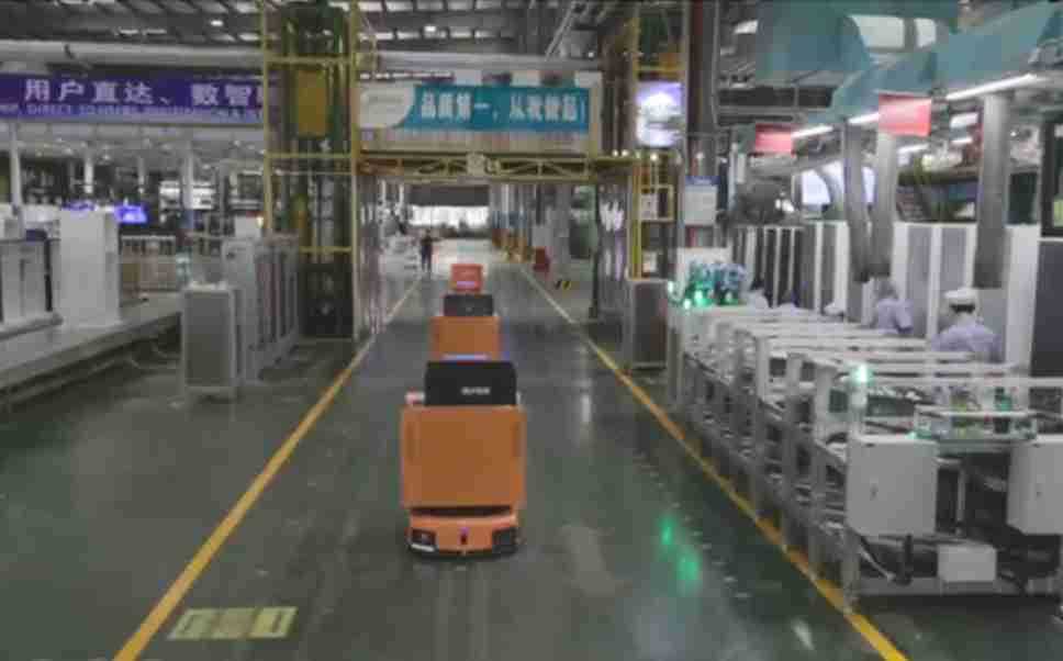 为车载冰箱物流配送打造的智能解决方案,,,包含产中物流通过潜伏举升AMR搬运至线边,,,,产后成品物流智能仓储,,流程包含产中物流智能齐套入库,,,,线边安灯叫料AMR智能配送至线边,,,成品入库、、、、出库,,,通过无人堆高车机器人,,,智能仓储管理替代人工作业管理,,,,实现更高存储、、、、更高效率、、、更具柔性化的解决方案。。。。